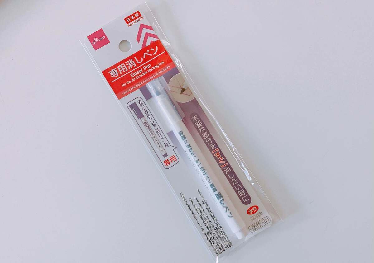 こちらは先程紹介した“印付けペン”を消す事ができる“消しペン”100円(税抜き)です。 印つけペン、自然に消えるとはいえ2〜10日も待てない…間違って書いた部分はどうするんだろう?と思った方もいらっしゃいますよね。