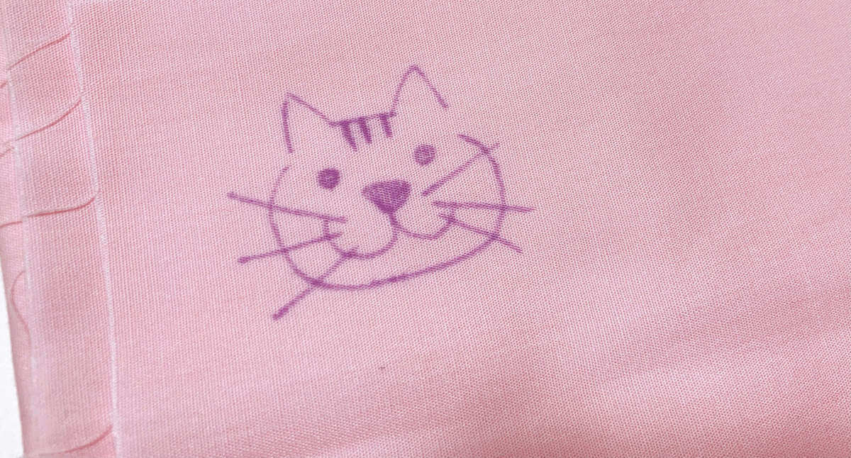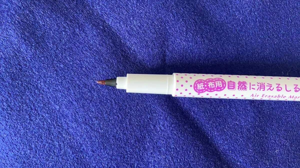 そんな時に見つけた“水で消えるしるし付けペン”、これがとっても描きやすく長らく愛用していました。でも欠点が一つ…それは“水を使わないペンの跡が消えない”ということ。ズボラな私は作品が出来上がった後にそろりそろりとつけた印の跡を洗うのが何気ないストレスでした。部分洗いとはいえど、洗うと布がクシャクシャになるのでその後のアイロンがけは必須。この手間をどうにか省けないだろうかと思うこと数年。