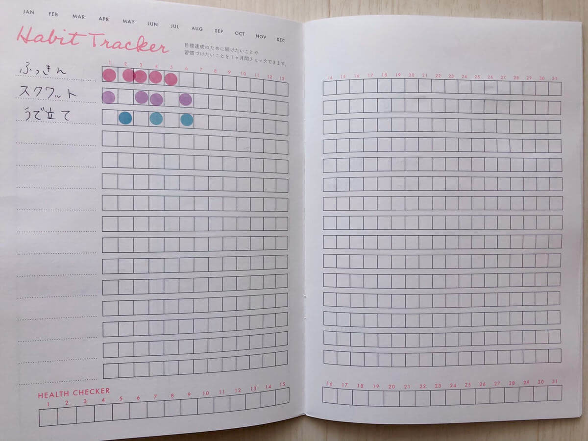 ページの一番下には、ヘルスチェッカーがあり、体調を記録できます。