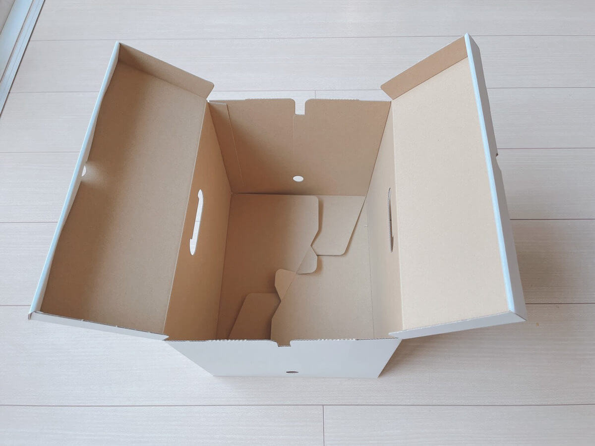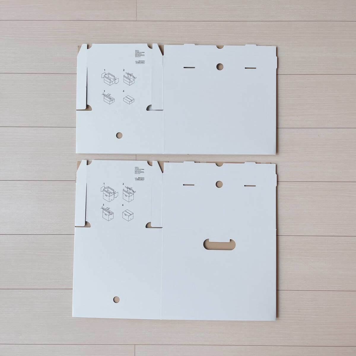 2021年発売された新しい収納用品です。ダンボール素材の組み立て式なのでペッタンコ。持ち帰りやすくていいですよね。