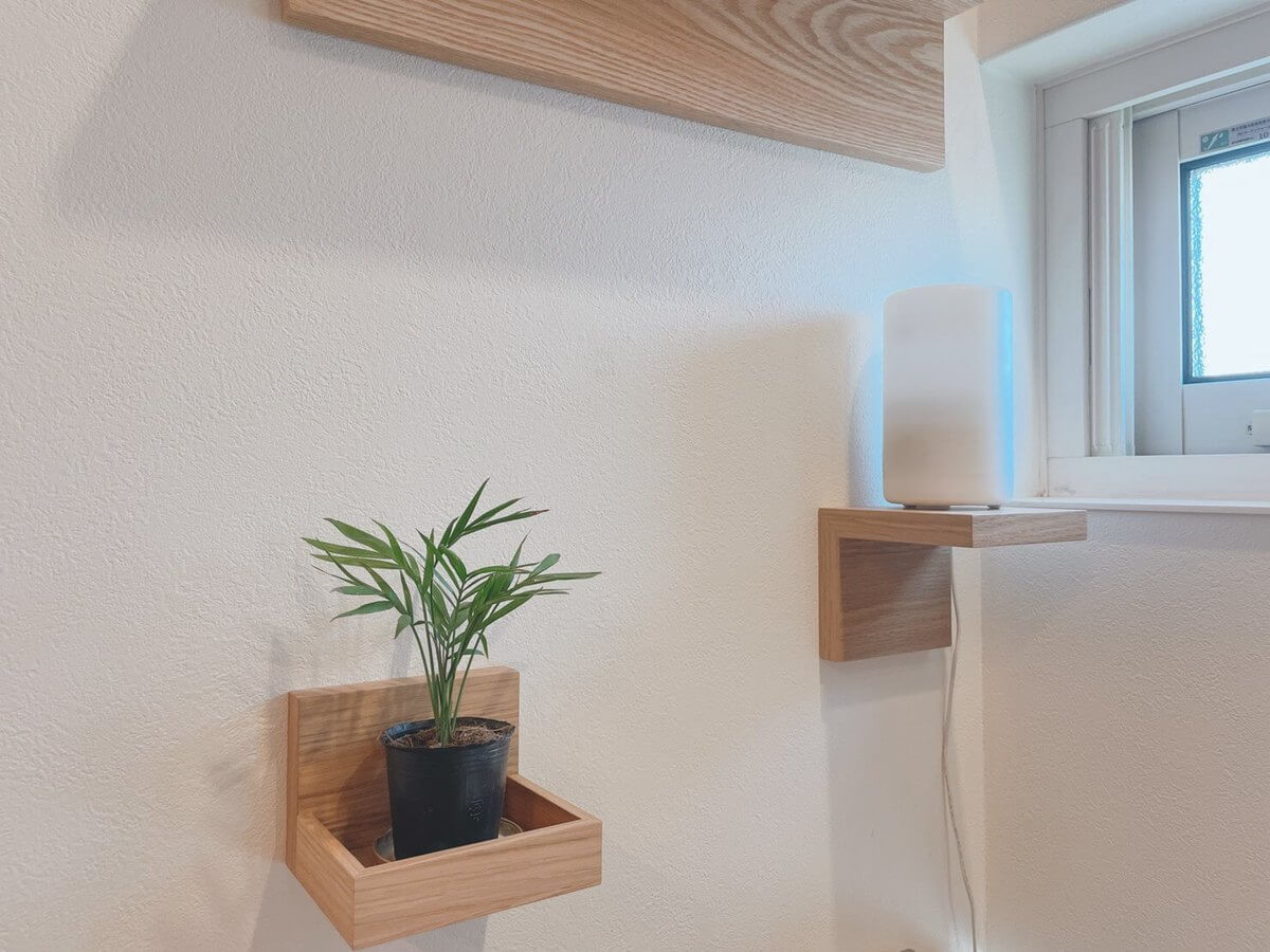 壁に飾ることで空間を広く使えますし、普通にカウンターなどに置くよりおしゃれに見えますよ。