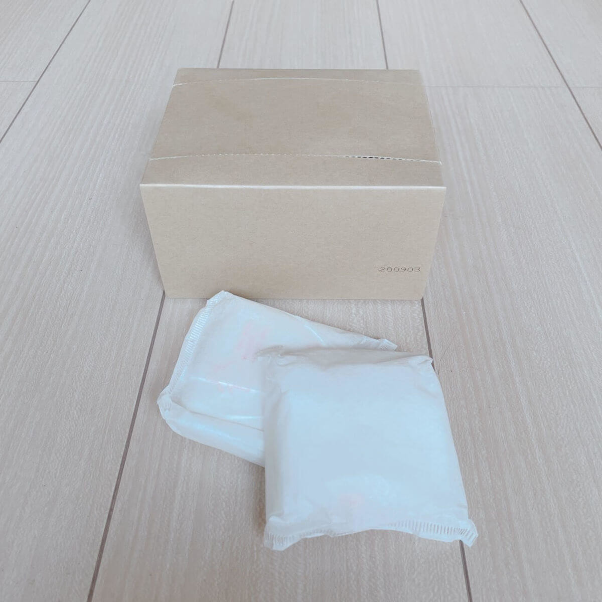 無印良品のパッケージは「THE 無印良品」です。なんだか正直わからない箱。それだけに、買う時も気にしなくていいですし買ったままトイレの棚に置くことも可能なんです!