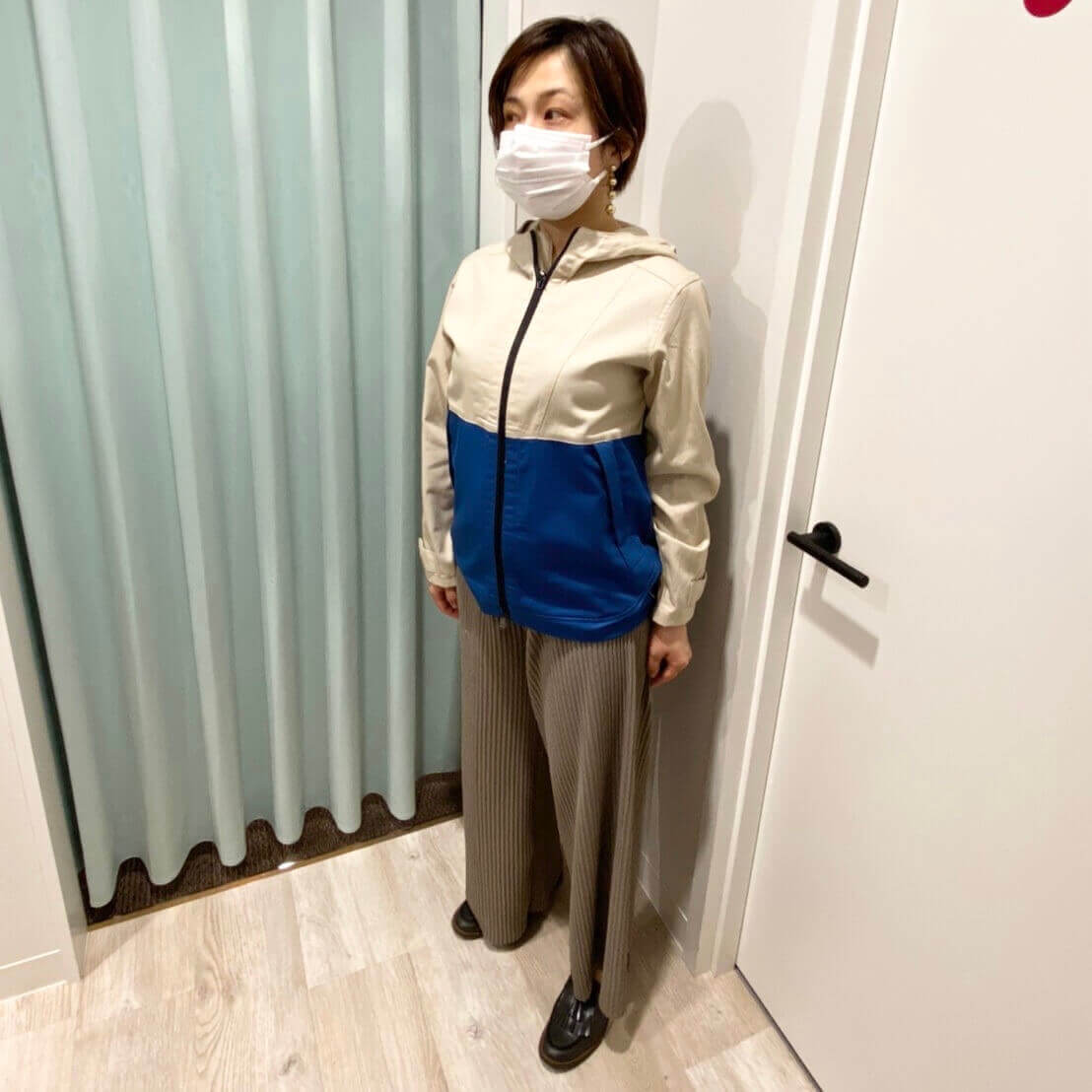 今回はアウター、トップス、ボトムの3種類をそれぞれ150㎝サイズを試着させていただきました。