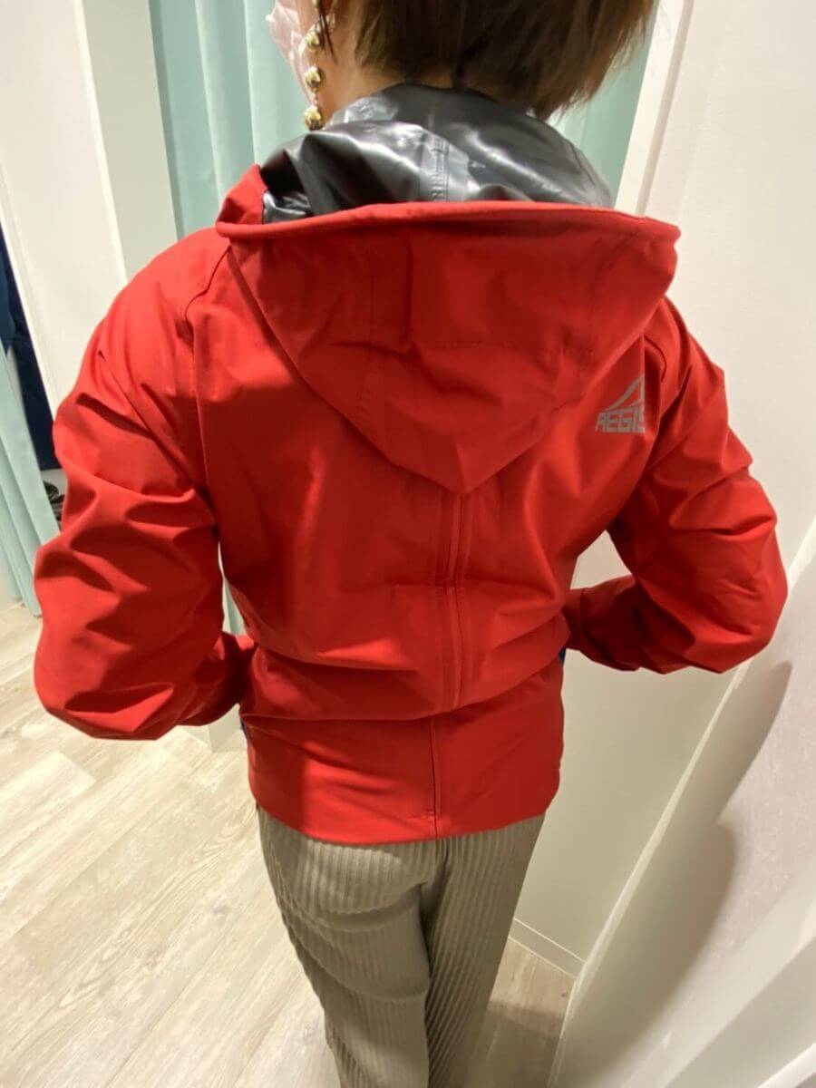 続いて、限定生産の「BAG in ジュニアレインジャケット」(2,900円・税込)のレッドを着用しました。