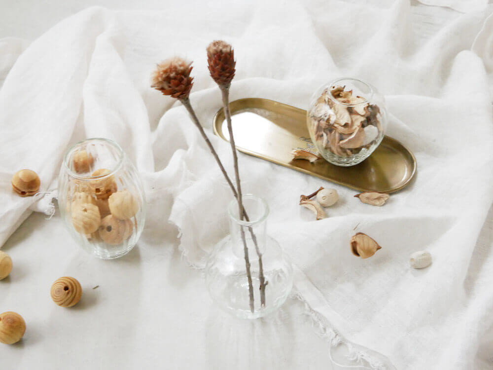トレイにただ置いてみたり、可愛いガラス瓶に入れたり、麻紐で吊るしてみたりと、香りだけでなく飾り方もこだわらせてくれます。