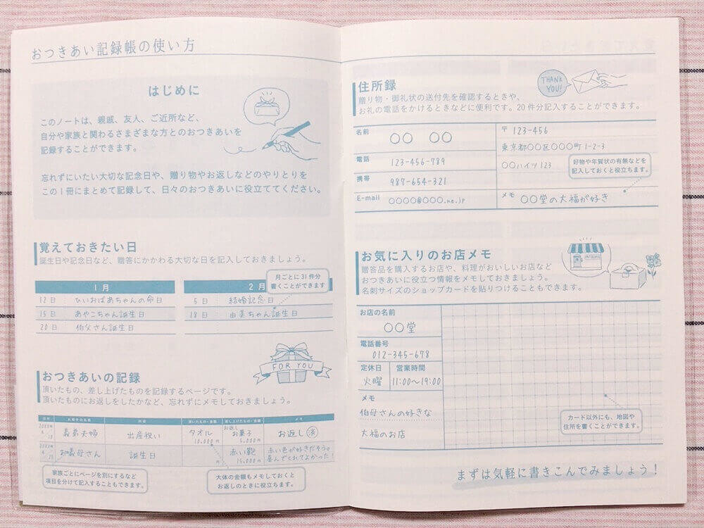 ついでに他のノートも覗いてみると、パスワード管理ノートと同じくとても便利なノートを見つけました。それが「おつきあい記録帳」。