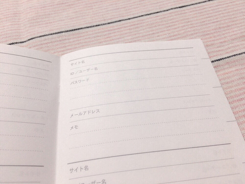 IDやパスワード、住所録など、大切な個人情報なので持ち歩くことはおすすめしませんが、何かあったときのためにアナログな保管もあれば安心です。