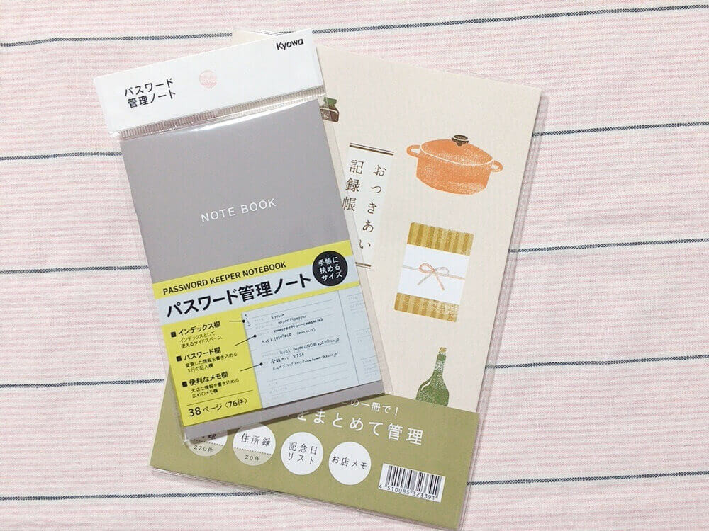 今回は、セリアの「おつきあい記録帳」と「パスワード管理ノート」を紹介致しました。
