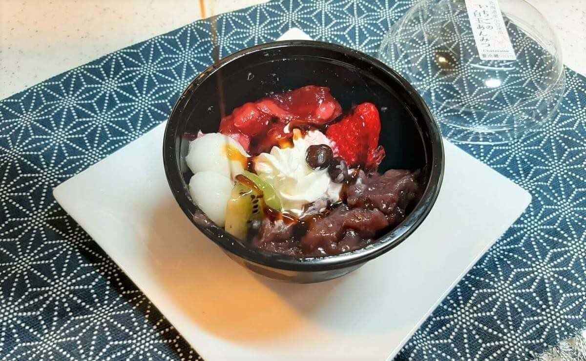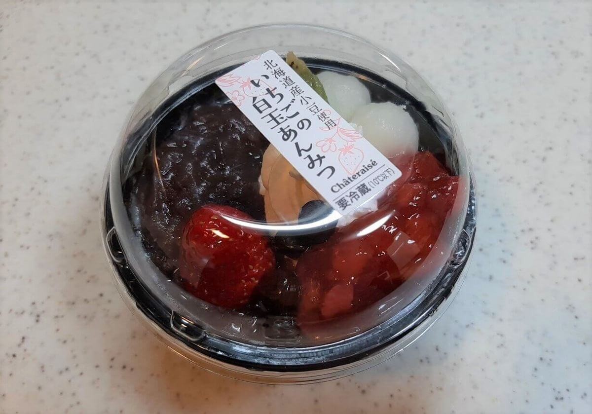 - 北海道産小豆使用 いちごの白玉あんみつ 302円(税込)