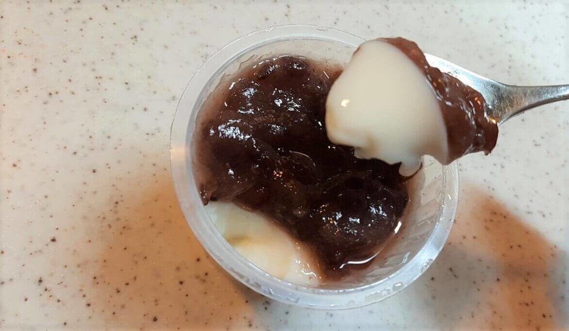 せっかくなので、全部かけました。ちょっと黒蜜だらけな見た目になってしまいましたが……。早速いただきます。