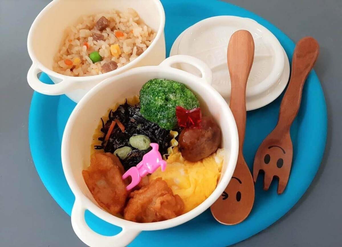 角切りの焼き豚・にんじん・グリンピース・卵など具もたくさん入っていて、お米の味付けもしっかり。 冷めてもおいしいので白米弁当に飽きたら取り入れてみてはいかがでしょうか。