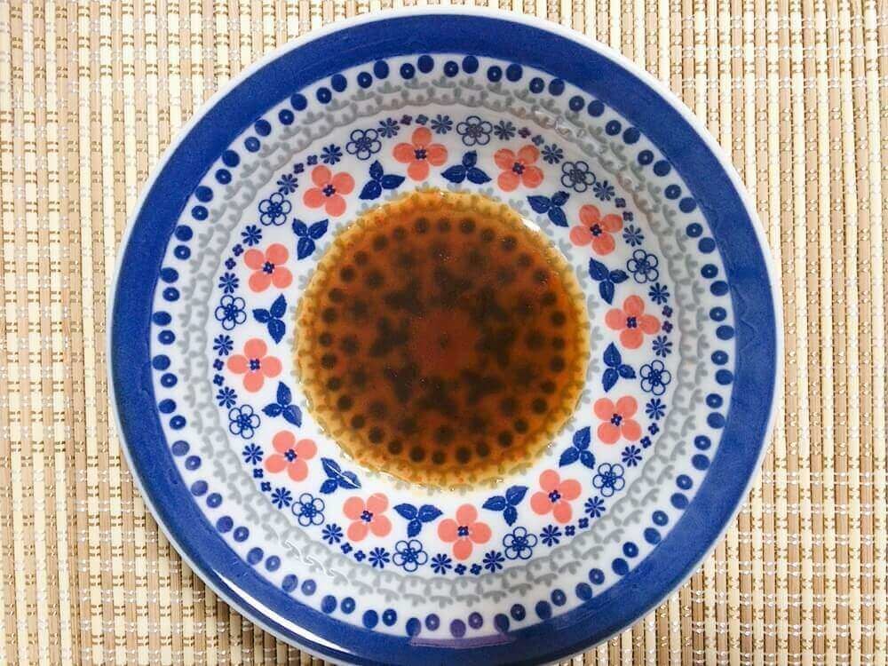 容器に特製タレだけを入れたところです。餃子のタレのような色をしています。