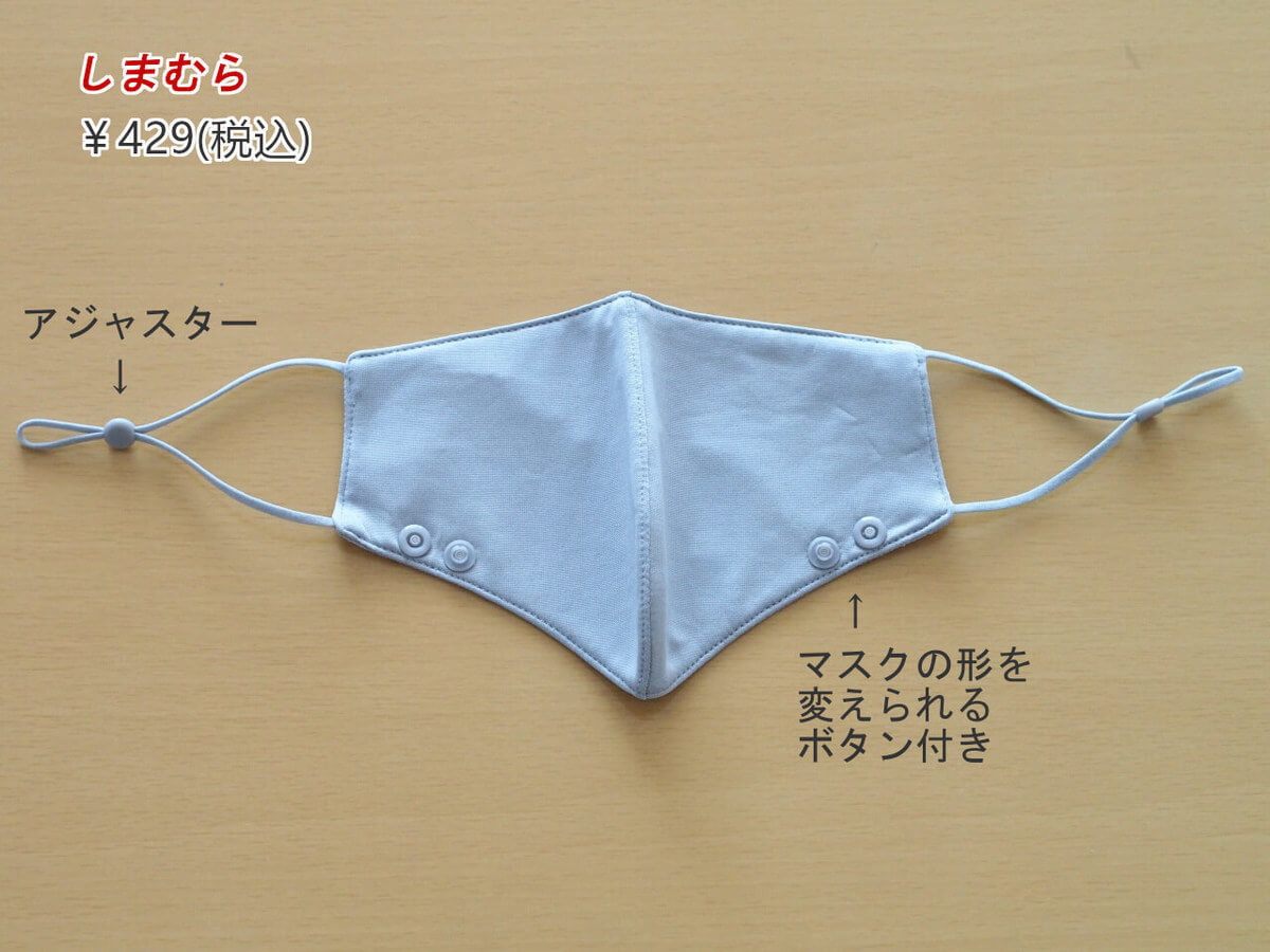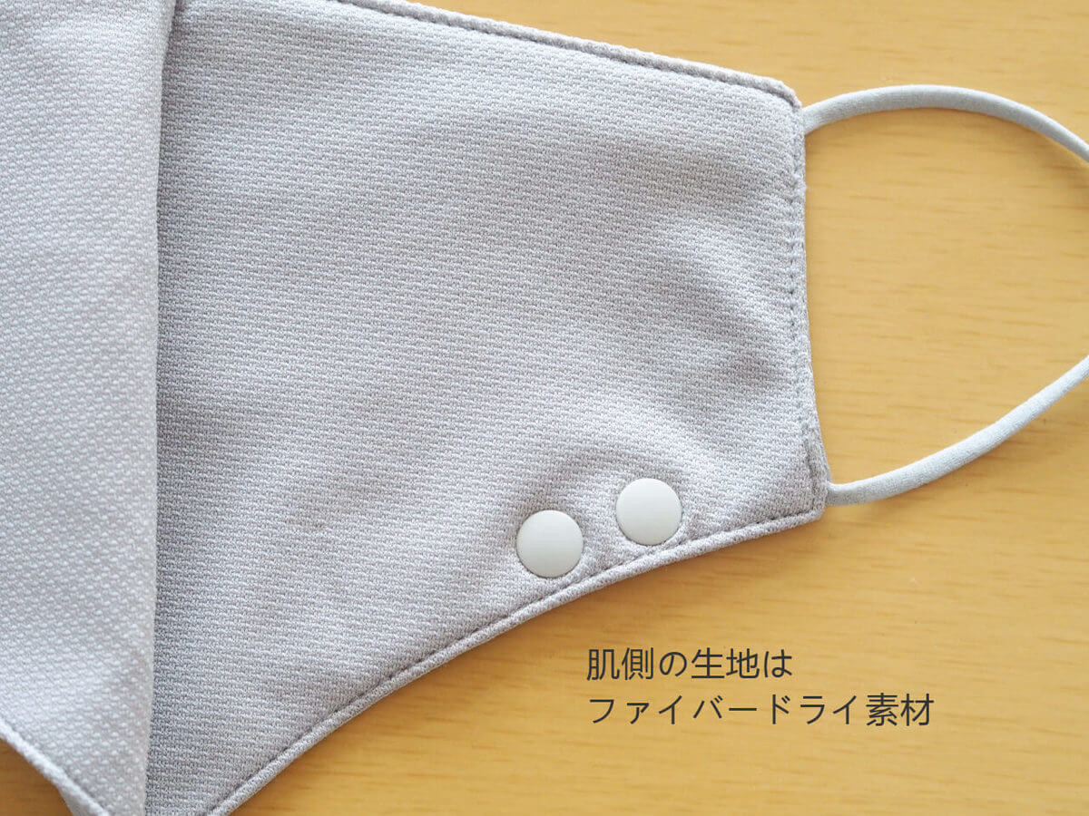 マスクは、形を変えることができるボタンが付いているのが特徴。