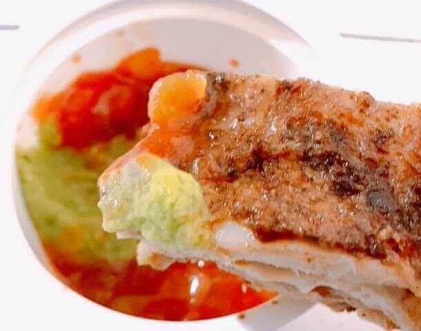 サルサ&ガッカモーレのソースをディップしていただくと、独特の香辛料のお味とさわやかな酸味がマッチして、マイルドなお味に。
