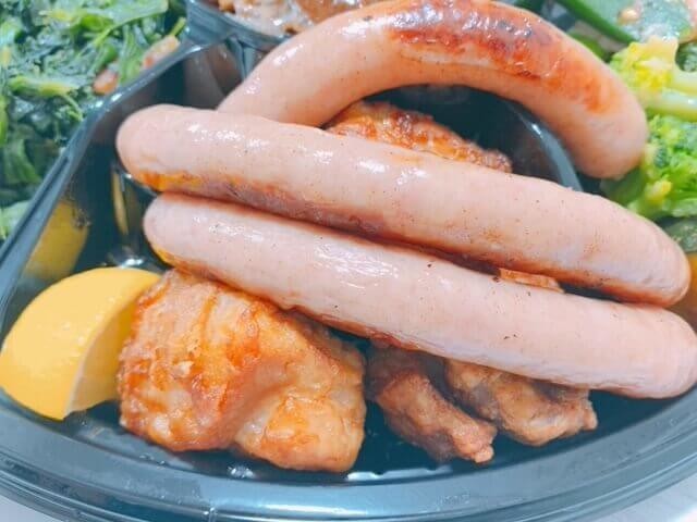 子どもが好きそうな「唐揚げ&ソーセージ」は、それぞれ3つずつ入っていました。