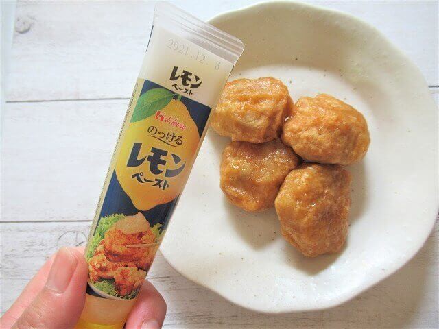 のっけるレモンペーストを使ってみて、一番マッチしたのがから揚げに乗せて食べる方法でした。