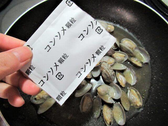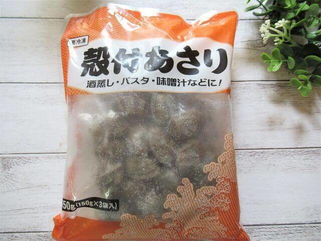 ちなみに業務スーパーには「むき身のあさり」もありますが、殻付きあさりの方が料理の見栄えもいいので、あえて私は殻付のあさりをチョイスしています。