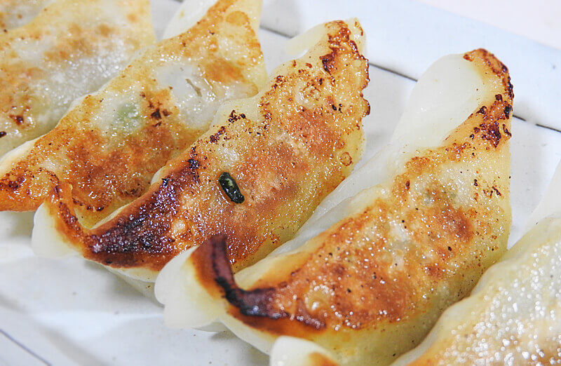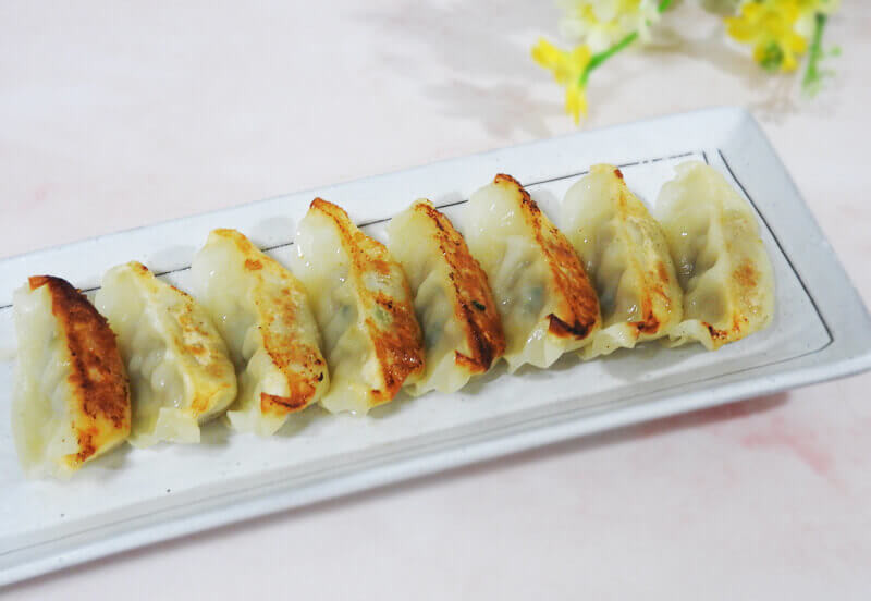 - 水気がなくなり、餃子に焼き目がついたら完成
