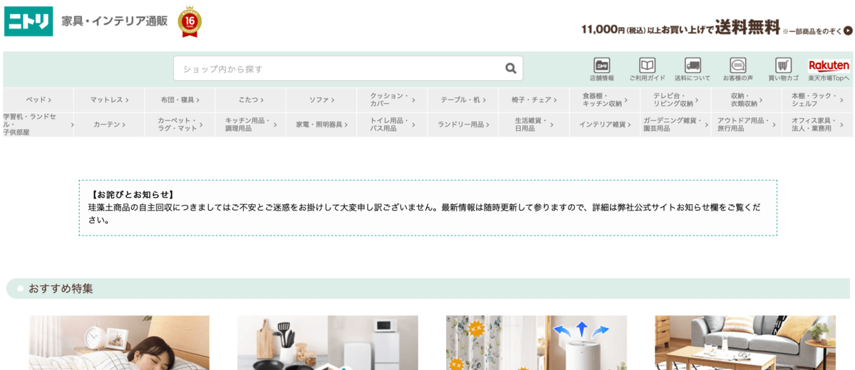 ニトリには、ニトリ公式通販「ニトリネット」があります。