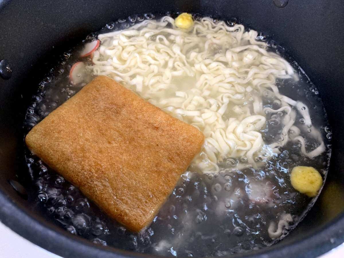 しかし!麵はよかったのですが...お揚げも一緒に鍋で煮たのは間違いなく失敗でした。お揚げの美味しさが煮汁に逃げてしまい、とても残念な味になってしまいました(泣)。