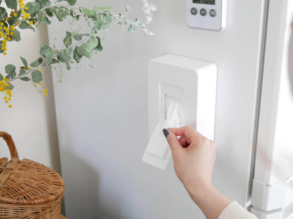 そんな、お掃除上手な「ウェットシート」をキッチンの冷蔵庫にピタッと付ければ、汚れをサッと拭くことができ、清潔なキッチンを楽々キープ♪
