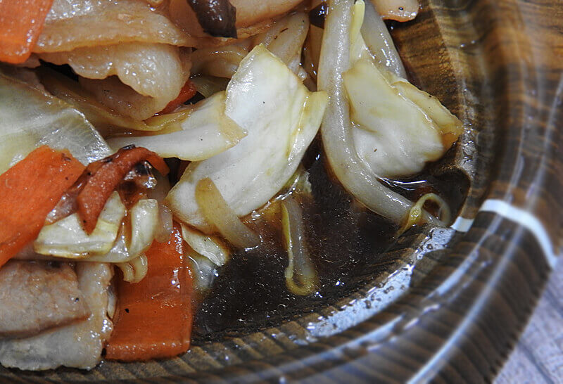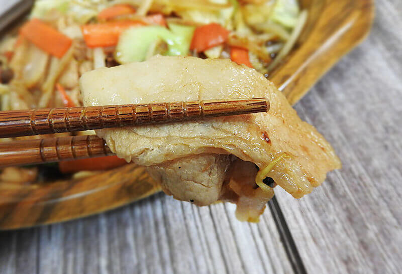 お肉はやや固めで噛み応えがあります。醬油ベースの味がしっかりとついていて、野菜と共に食べると旨味が増しますね。