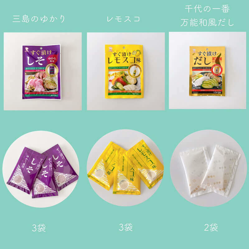 パウダー状の浅漬けの素なのですが 数種類あって、今回私が購入した3つは