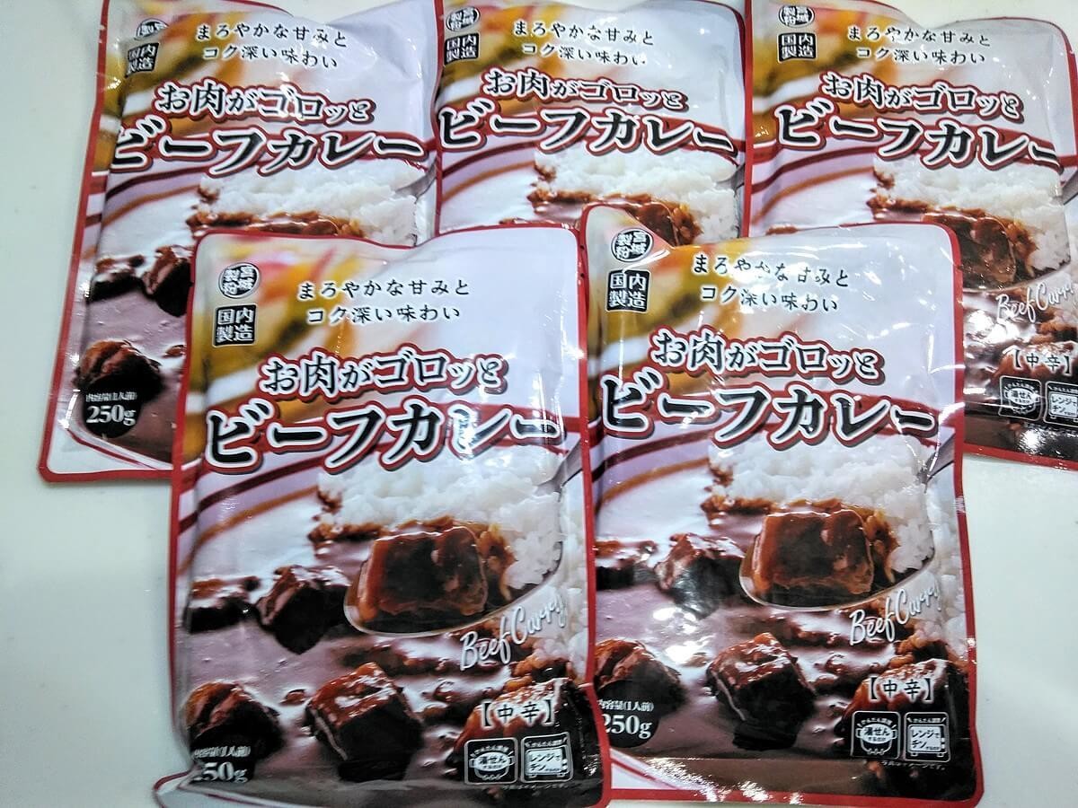 - 業務スーパー「お肉がゴロッとビーフカレー」378円(税別)・5パック