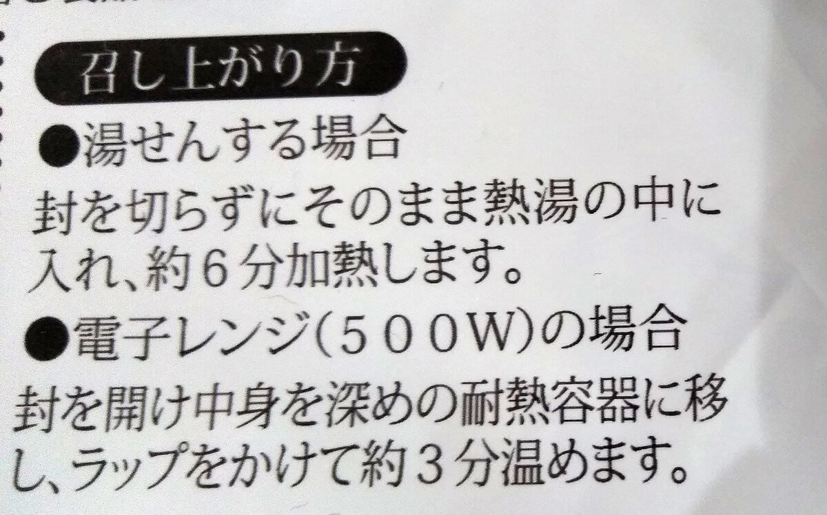 温め方は、耐熱容器にうつし、電子レンジで温める(500W約2分)方法と、湯せん(熱湯約4分)する方法の2種類があります。
