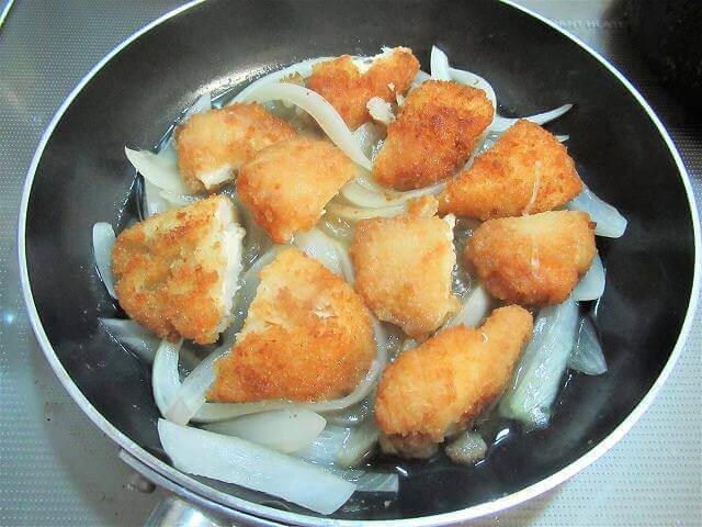 出汁がチキンカツの衣に染み込んで柔らかくなり、とってもおいしいです。ぜひお試しくださいね。