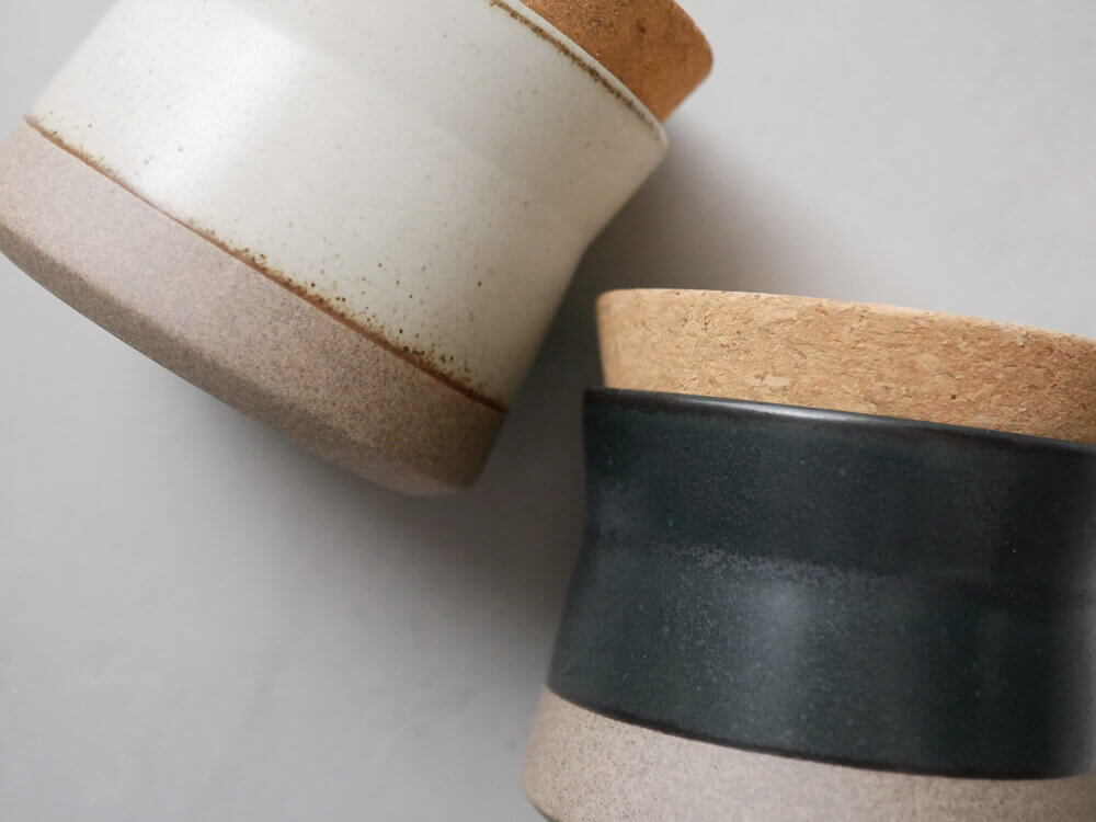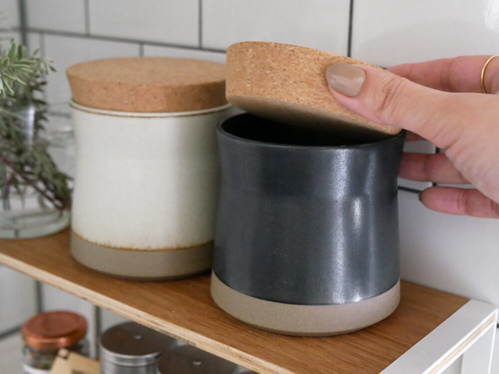 素朴な土の質感と味わいある釉薬、温かみのあるコルクの組み合わせがほっこりとさせてくれる「キャニスター」