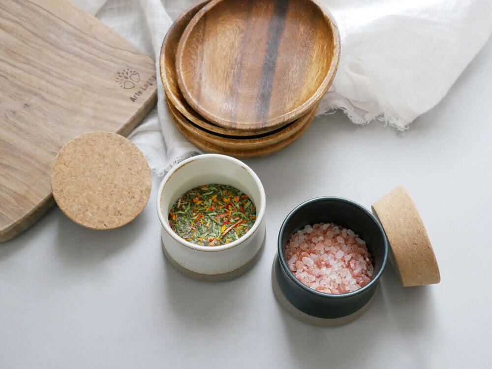 100ml入る「Sサイズ」は塩、砂糖、スパイスを入れるのに適した小ぶりなサイズ感、置いてあるだけで可愛らしい佇まいで、お料理中だけでなくテーブルに置いても◎