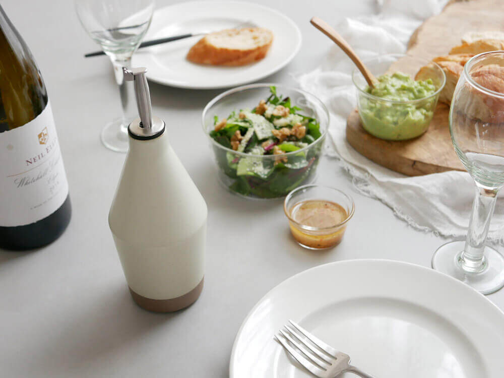 キャニスターと一緒に揃えたい、同シリーズの「オイルボトル」。 オイルやビネガーを入れて、キッチンだけでなく食卓でもおしゃれに置けるルックスとサイズが魅力です。