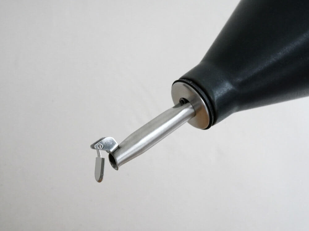 長くて持ちやすい容器は、傾けるだけで蓋が開閉するので、調理中も片手で簡単に注げます。 細いノズルは、注ぎやすく液だれしにくい設計。 さらに、小さな注ぎ口は空気が侵入しにくいので酸化を防ぎ、少しずつ必要な量を出すのにとても便利なんです。