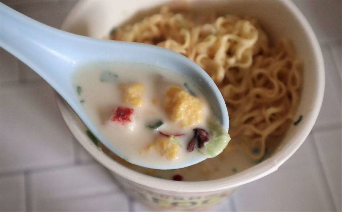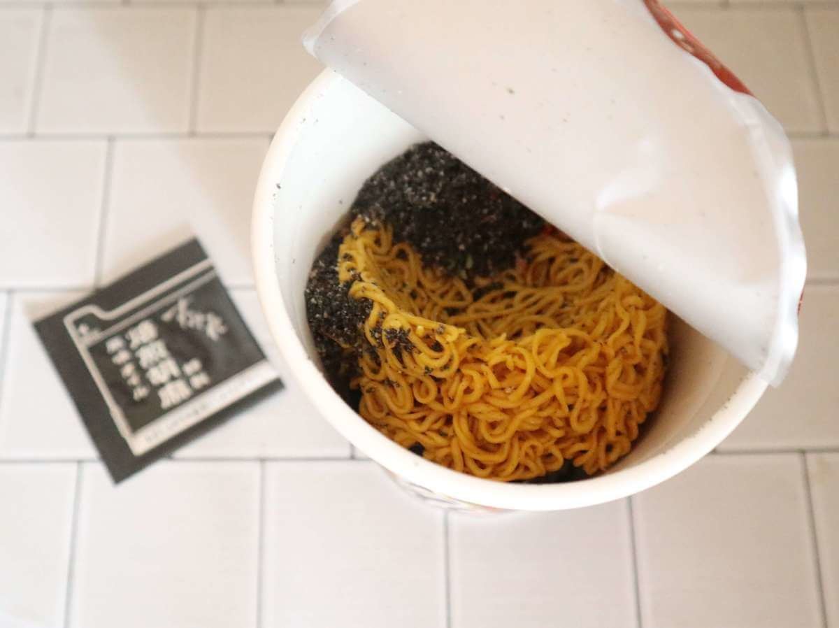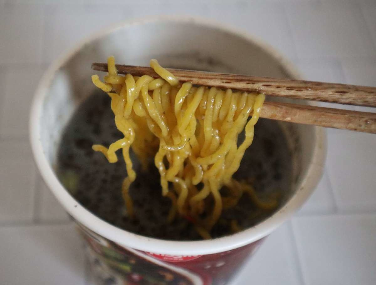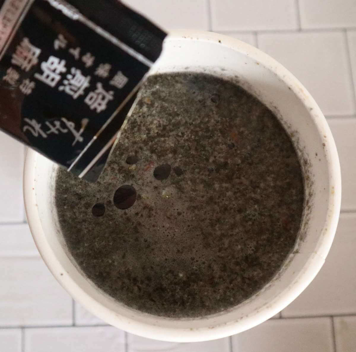 5分経ち、蓋を開けるとびっくり!想像以上に真っ黒なスープが!