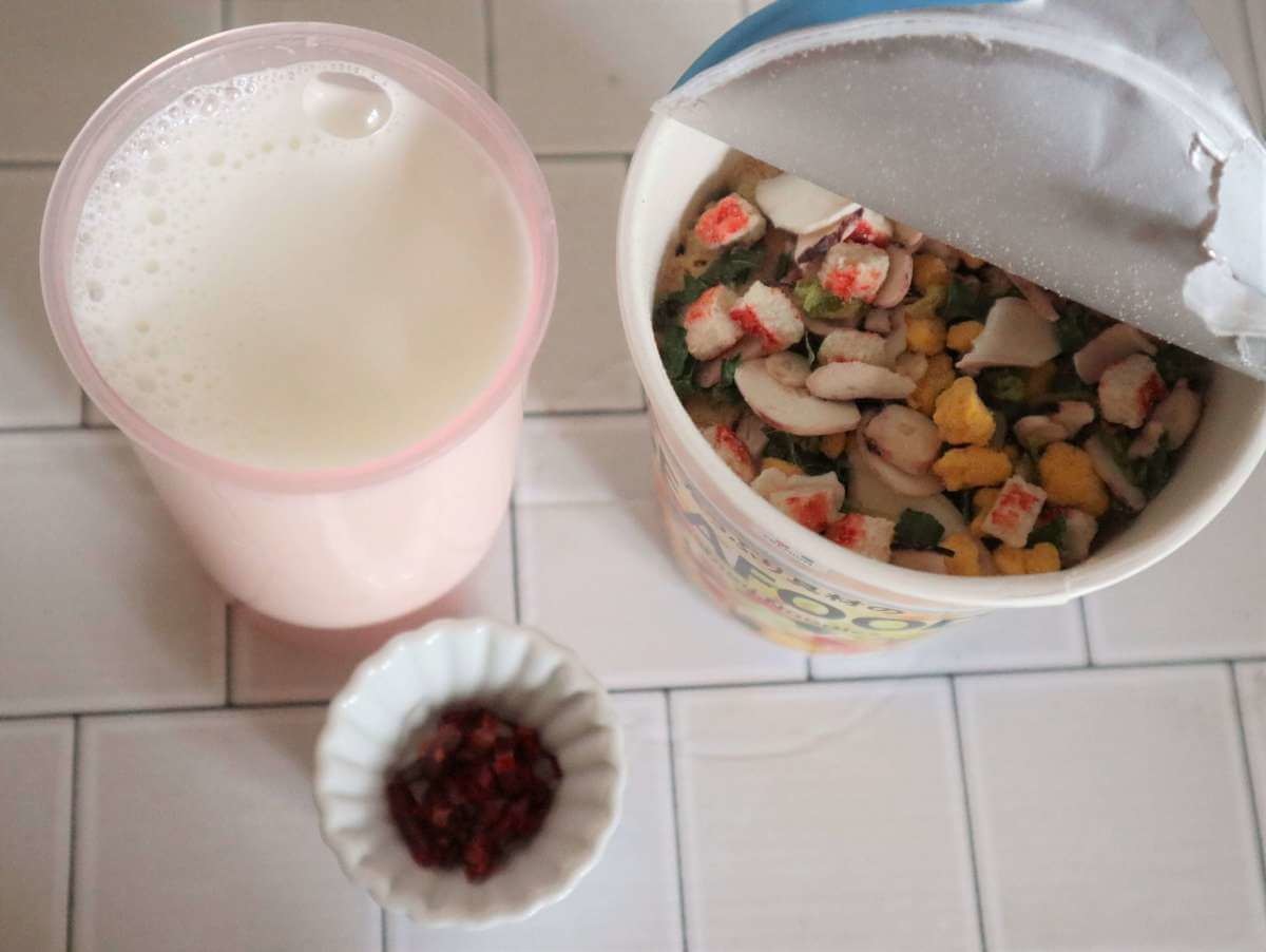 牛乳は、麺に吸われにくいので通常の放置時間3分より長く4分半から5分ほど放置します。