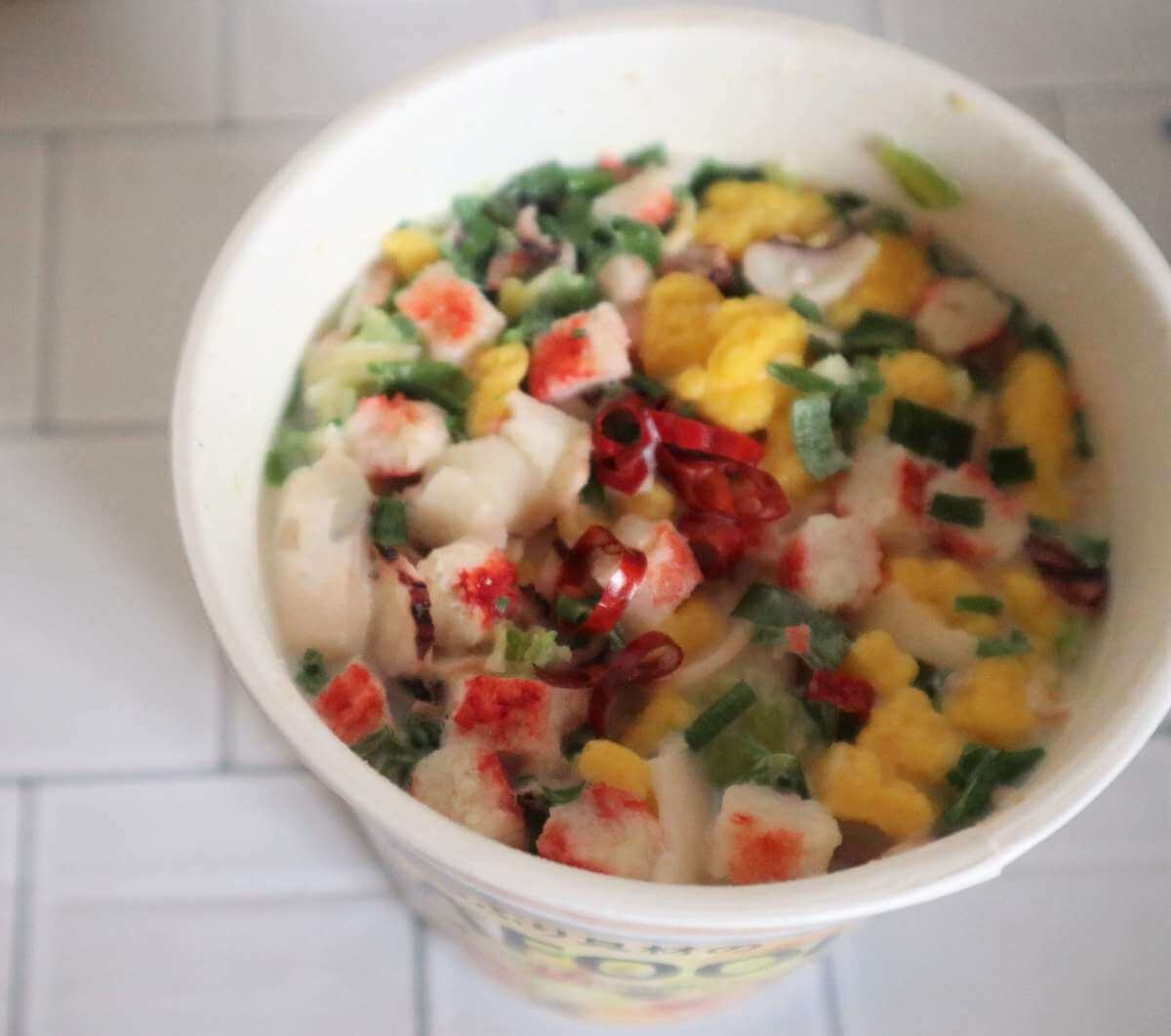 ラーメンも大好きですが筋金入りのアニメオタクの臼井は、今旬のアニメ「呪術廻戦」も好きで、その中で作っていたシーフードヌードルのアレンジをセブンイレブンのシーフードで作ってみました!