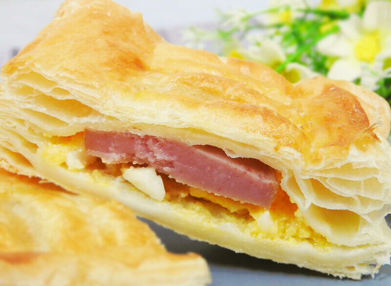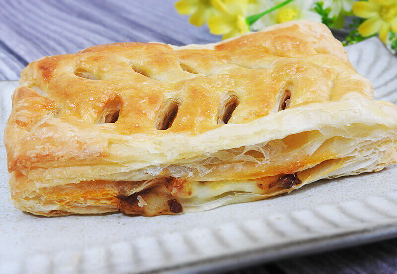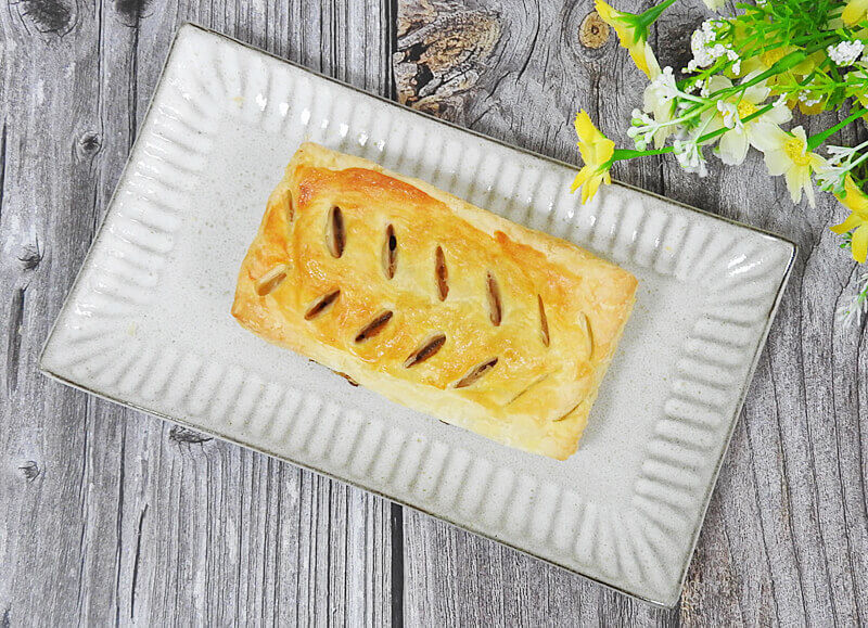 「ほぼ長方形に近いパイ生地の中にソーセージをどうやって入れたんだろう」と気になっていたのですが、スライスされた状態のソーセージがドドーンと入っている形式だったようです。