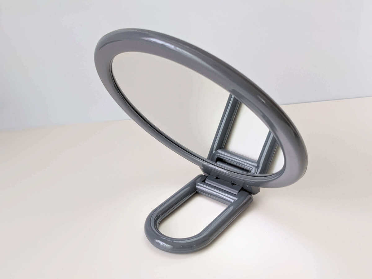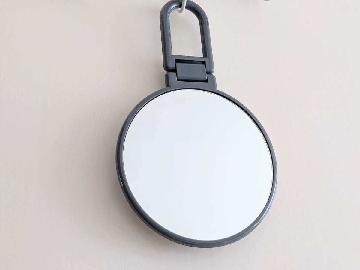「手持ち」「壁掛け」「卓上」の3通りの使い方ができる折り畳みミラー。 こちらもフレームがグレーなので、他のアイテムと合わせると統一感が出ます。