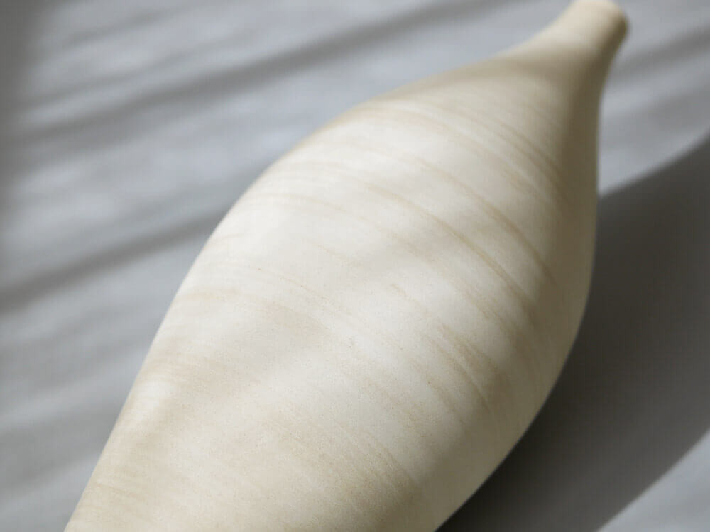 「手引きろくろ」という独特の道具を使って作られる「フラワーベース」は、浮かび上がるグラデーションのような模様が特徴的。 それが「味わい」でもあり、「魅力」でもあります。