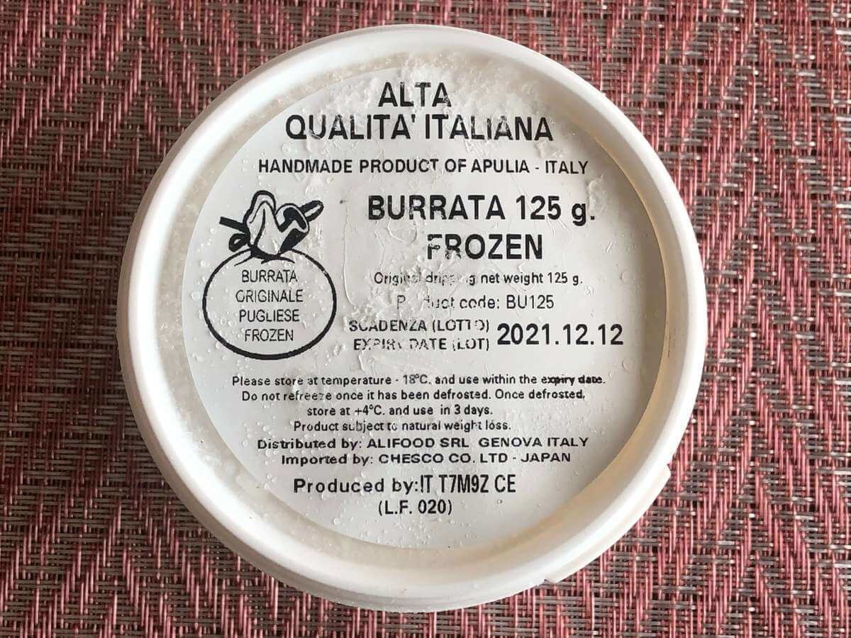 というわけで、「ブッラータ」チーズはカルディの冷凍コーナーにありました。