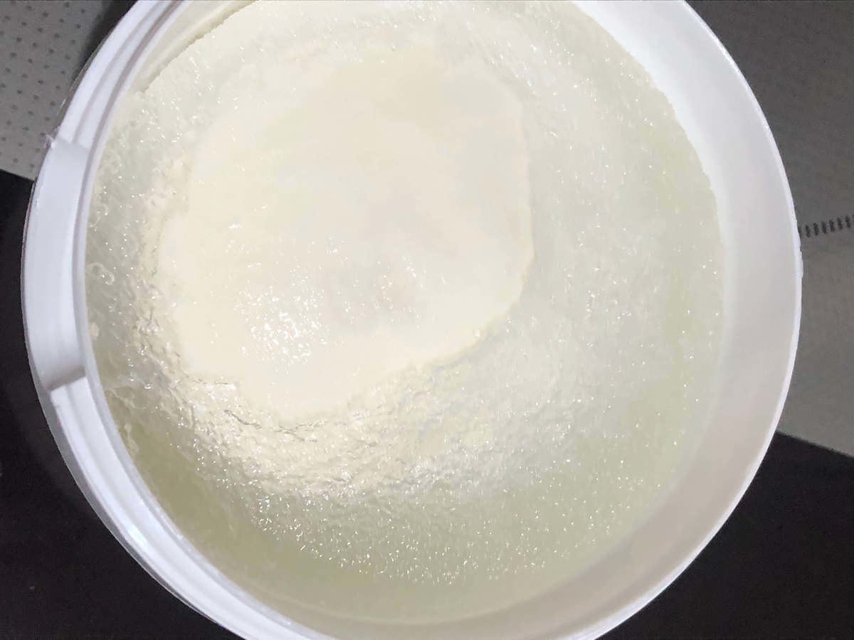 1日解凍したのに、ブッラータを開けるとまだ氷の塊が……。水の中に浮いているのですが、これじゃ取り出せません。あと半日食べるのを遅らせました。