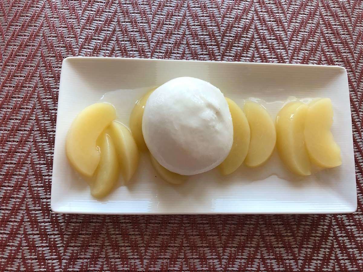 桃缶の桃の上にブッラータを合わせただけで、レストランのデザートの味になるとか。