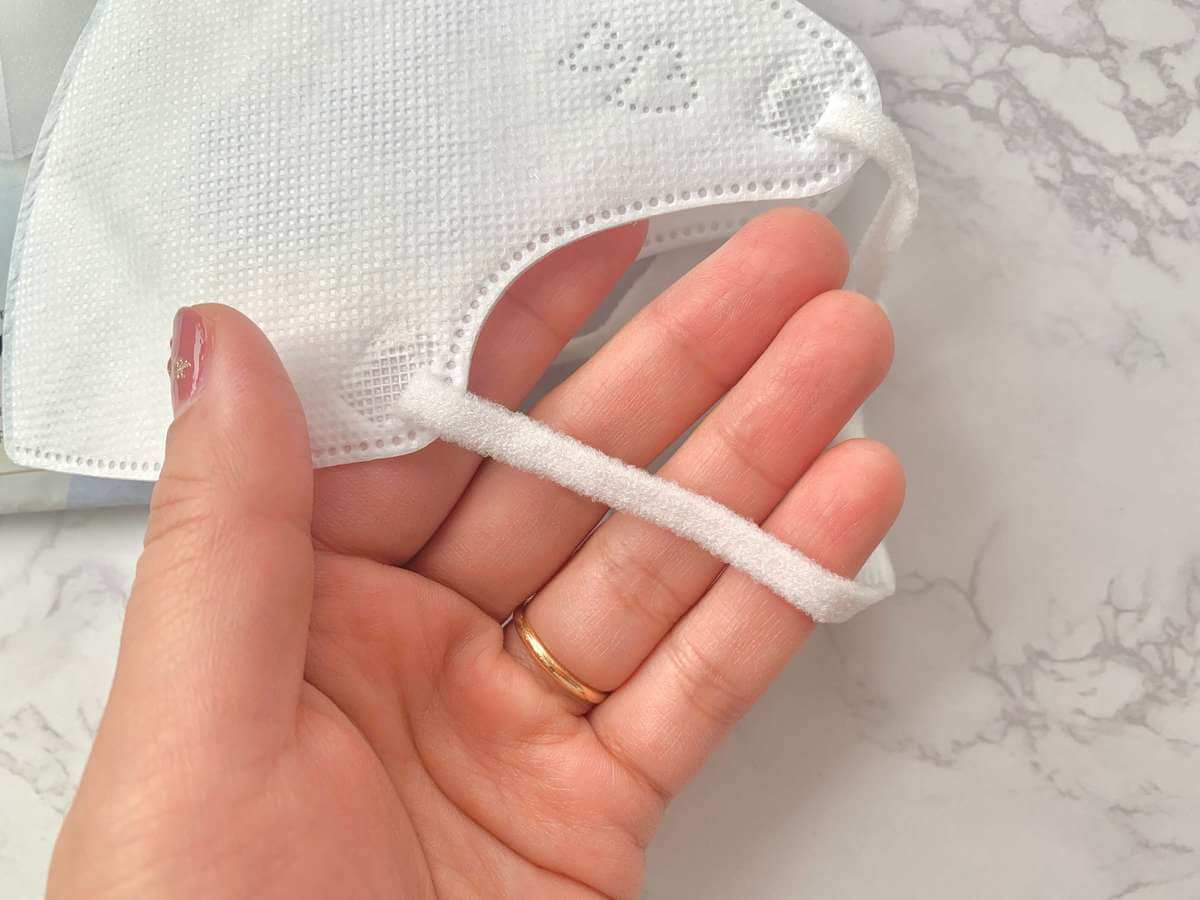 ②ふんわりとした幅広の耳ひもで、長時間使用しても耳が痛くなりにくい