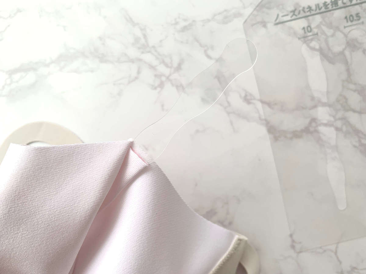 マスク内部のセンター部分にポケットがあるので、まずは幅が一番狭い10㎜のパネルを差し込ます。