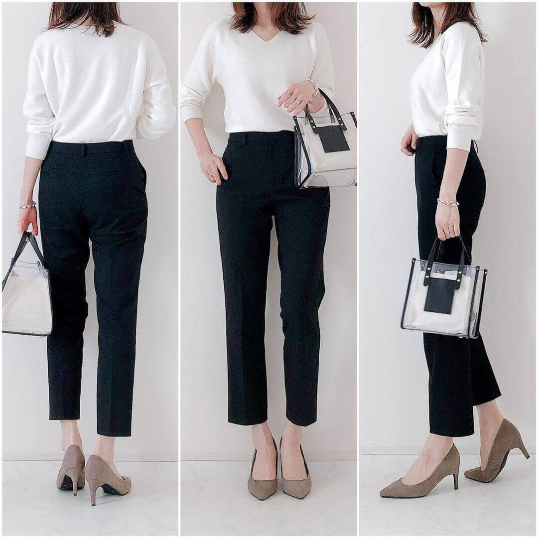 ユニクロのスマートアンクルパンツをクローズアップして、ファッショニスタのコーデに併せてお伝えいたしました。
