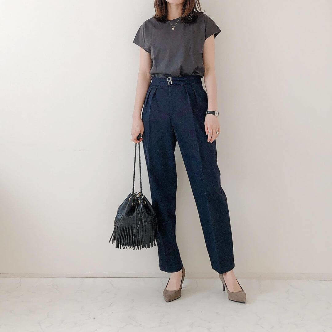 【グレー】ネイビーパンツと合わせた大人レディコーデ