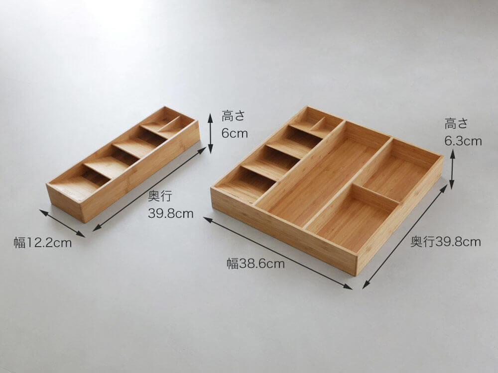 引き出しのサイズに合わせて選べる、幅の狭い「コンパクト」と、たっぷり収納できる「ラージ」の2タイプをご用意しました。