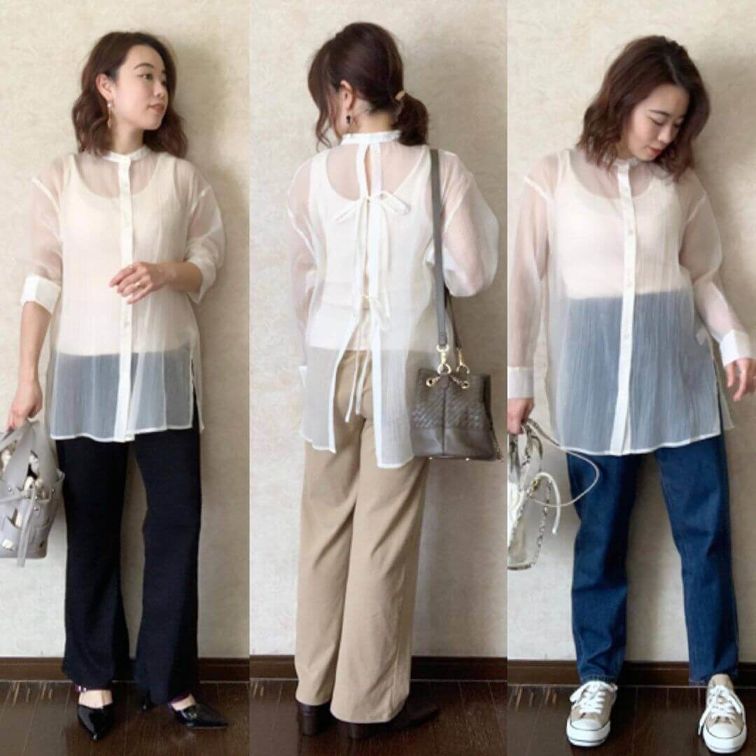 お腹周り気になる人専用【GU】今旬「シアーシャツ」が超優秀♡着回し力最強!旬コーデBEST3