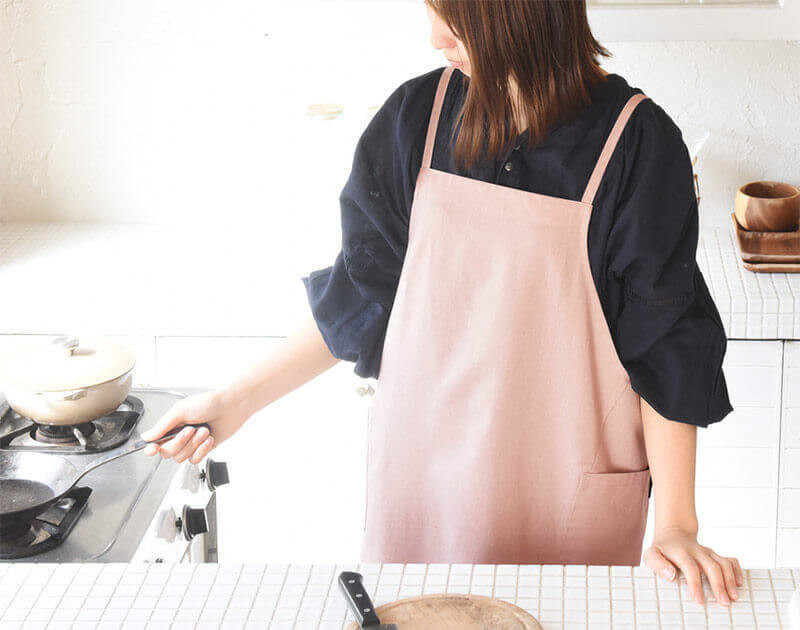 「bon moment(ボンモマン)」のコットンリネンエプロンは、着けていることを忘れるほどの軽さが特徴。